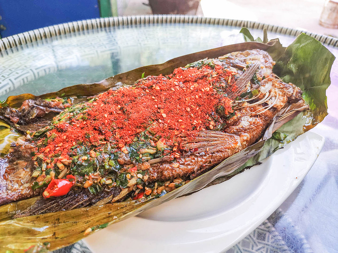 在一寨兩國景區外的小店,點了一條燒魚,這是這次的旅遊在 雲南 吃的第一頓跟粉面餌絲無關的飯菜,由於吃不慣灑在表面的調料,有種嗆喉的感覺,可以撥開調料後,醬油的味道與魚質十分配合,口感非常好,我一個人把魚吃了大半,除此還點了一個涼伴皮蛋和炒青菜