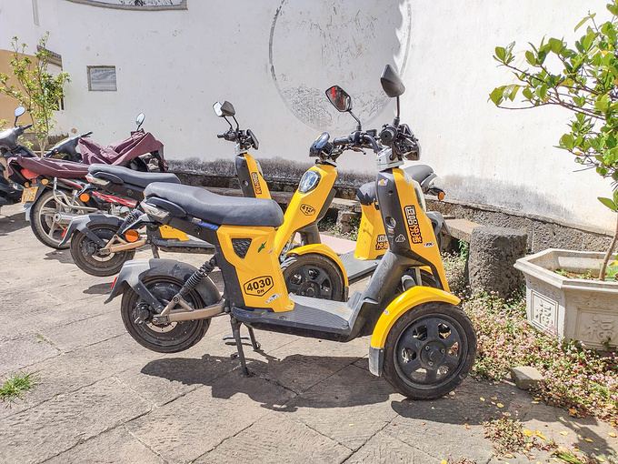 共享電動車,雙前輪,遊走在古鎮內特別的霸氣,這裡沒有 麗江 的喧嘩,只有互不打擾的清靜,有些不習慣這一種的古鎮 ,因為越往山上的越不被重視,遊人也越少