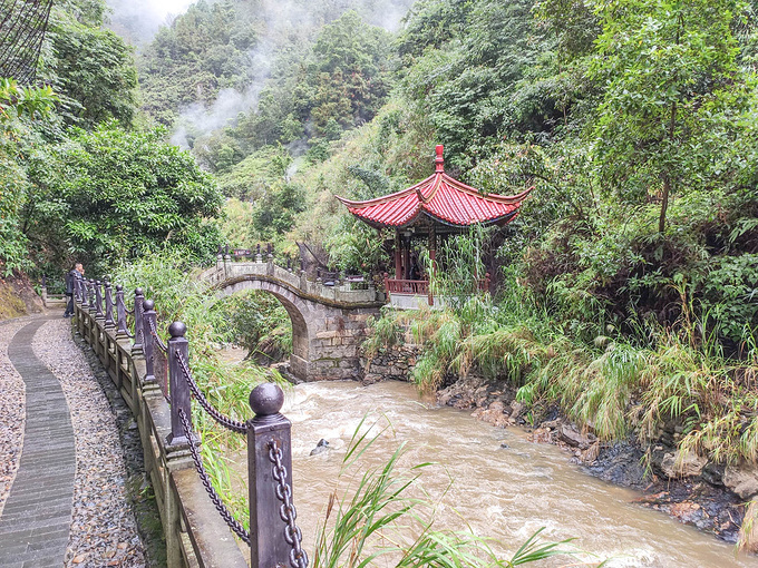 經過了一座石橋之後,就是不斷往上爬的樓梯,每隔幾米就會有一個池子,被冠以各種名目的池子,眼看那些水都是沸騰的,也有一些池子有湯勺放在旁邊 ,供遊人嘗用,同時每個池子邊上都有一個保安,負責著各人的安全和禁止在這些池子裡煮蛋,看來煮蛋的文化已經在這裡根深蒂固了