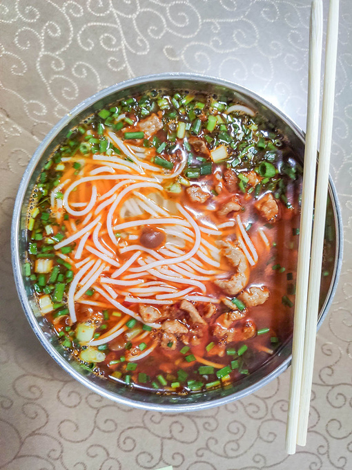 最後一天離開 昆明 的車是早上九點,大早趕到 昆明 南站,早飯也沒吃,就在候車廳裡選了一家老字號的 雲南 米線,這幾天來一直沒有好好品嘗過 雲南 米線,都是其它品類的粉面,於是下了決心嘗一吧,價格也不便宜,畢竟是在車站的地方,最後得出的結論是,這份餐只管飽,說不上好吃!