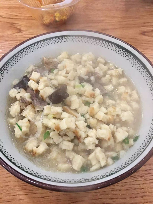 這一天累的我哪都不想去了,直接門口湊合吧,老米家羊肉泡饃。進店就給我發個碗一個饃,哈哈,讓我直接用手撕成小塊,對於這一點我還是很反感的,於是我說你就給我來碗湯,我就著這個饃直接吃,服務員說不行,那個饃是生的。哈哈哈,於是我隨便撕了幾下,沒想到居然給我揣回來了,說是不合格,哈哈——之後就是下面這碗了