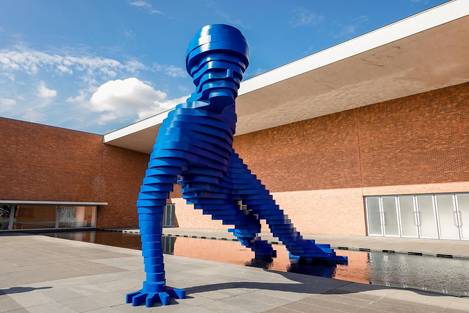 愛茉莉太平洋烏山工廠美麗妝園是基於自然、藝術、科學與文化相交融的理念而建造的綜合創新空間,這一藍色的創意雕塑更是園區的標志之一,這一造型仿佛是一位運動員在奮力拼搏,而藍色也代表了愛茉莉太平洋始終秉持的自然理念。