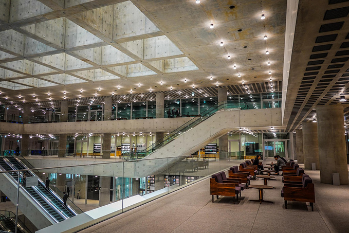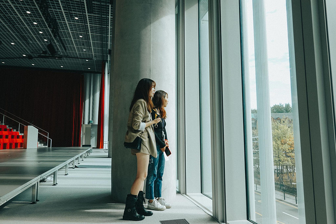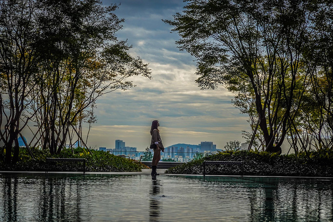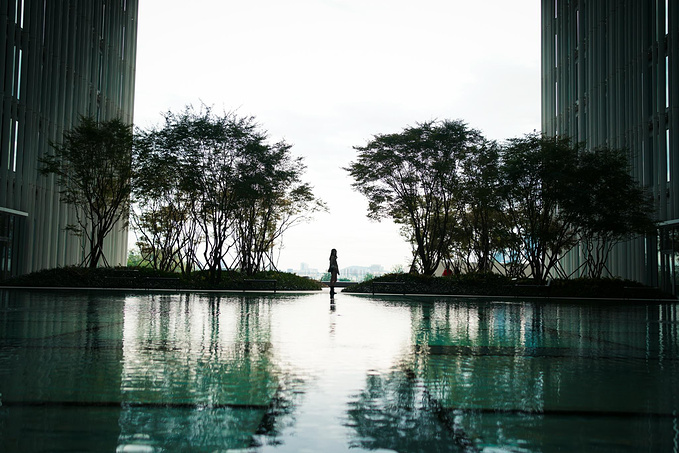 這裡的空中花園,太讓人流連了。透明玻璃上的水紋設計,讓人仿佛在水面上漫步,兩側的樹蔭下都提供了長椅,在工作或參觀之一,可以坐在這裡休息,感受自然的寧靜愜意。