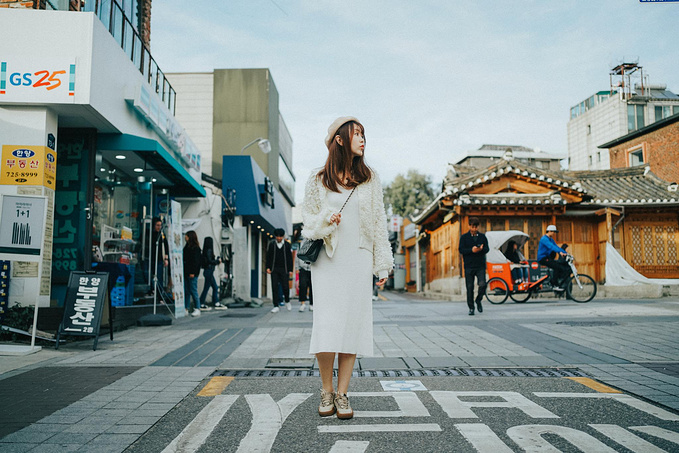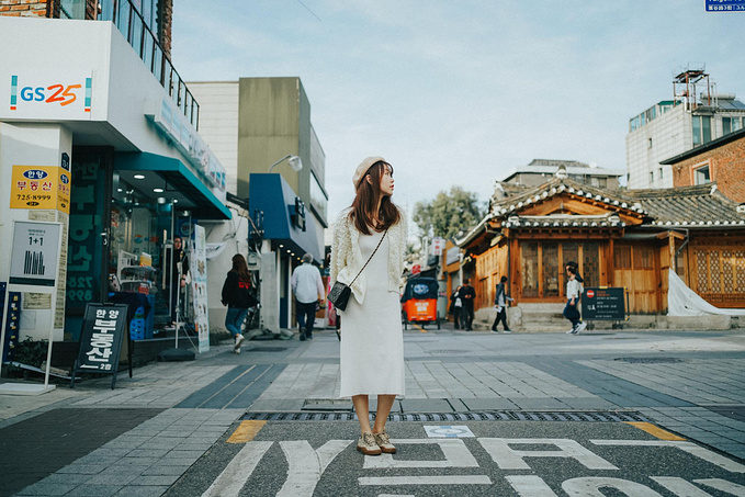 在這個路口,左手是各種現代創意店鋪,右手卻是古樸的韓屋建築,古今的碰撞,迸發出奇妙的火花。