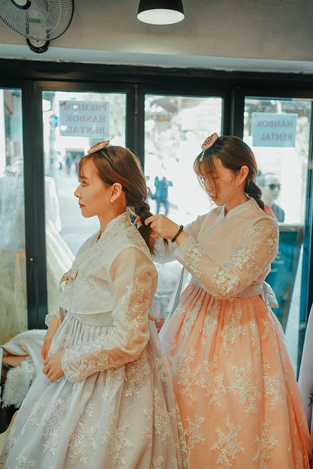 出發前,和閨蜜心有靈犀,都傾心於北村韓屋村的韓服體驗。之前我們各自都有去那裡體驗過,店內的衣服款式非常多,不僅有傳統的韓服,還有很多改良的韓服,融入了時尚元素,很多 韓國 當地人也會來這裡租賃拍照。租賃韓服的同時,還有各種各樣的發飾及搭配物件,如腰佩、發帶、內襯群等,可以免費選擇,造型都非常別致,店裡的小姐姐們也十分貼心,會根據你的特點提供各種搭配建議,幫你挑選適合的衣服和造型,體驗非常的棒。