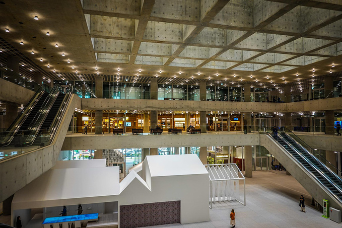 總部一層的中庭,是貫穿一至三層的中心區域,經常會舉辦一些主題展,也是遊客抵達參觀的第一站。地面層設有接待區、藝術博物館和茶室,都向公眾開放。在一層有禮堂、托兒中心,以及供顧客測試公司產品的地方。地面層則是更多的展覽和零售空間。禮堂一直延伸到三樓,兩層之間的自動扶梯連接著中央區域,上部庭院水池下方的天窗照亮了這片區域。