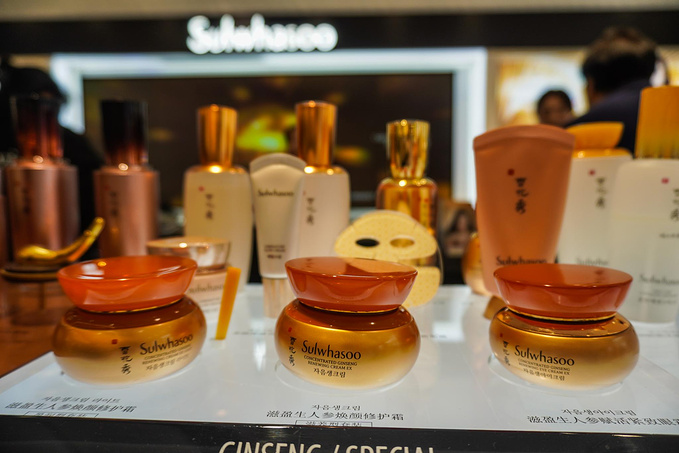 這次比較種草是的人參系列精華和面霜,主打深層護膚、補充營養、抗老,質地更適合秋冬季節。導購姐姐說到面霜含有人參根和人參花成分, 所以在國內價格偏貴,但是既然來了免稅店,可以享受那麼多優惠,絕對比國內便宜呀!