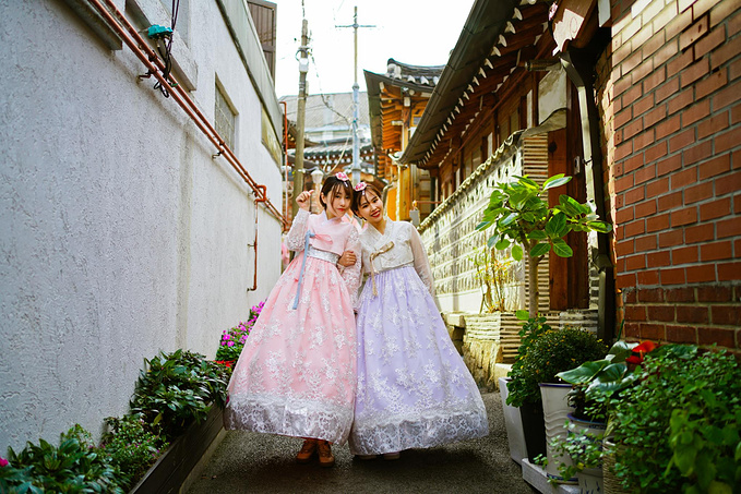 我們在機場直接辦理好運送行李後,一身輕松地開啟第一個旅程——北村韓屋韓服體驗,去拍美美的閨蜜照啦!